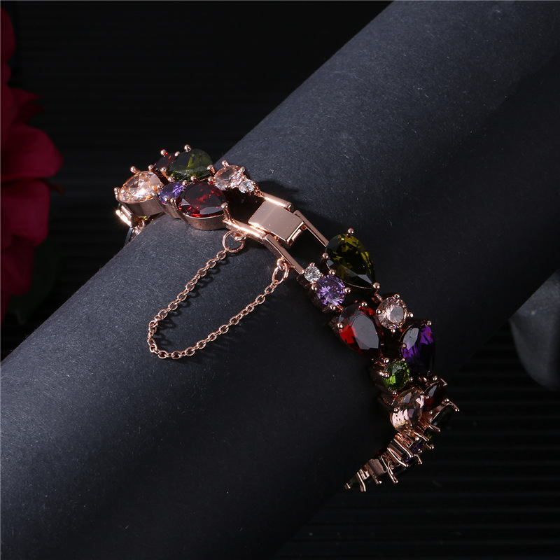 カラフルなジルコン七色のローズゴールド製ブレスレット