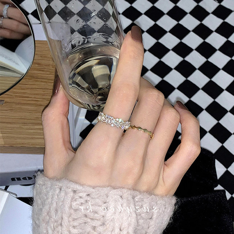 ホームリングダイヤモンドリング絶妙のジルコンの調節リング、メッキリアルゴールド、おしゃれでスタイリッシュ。