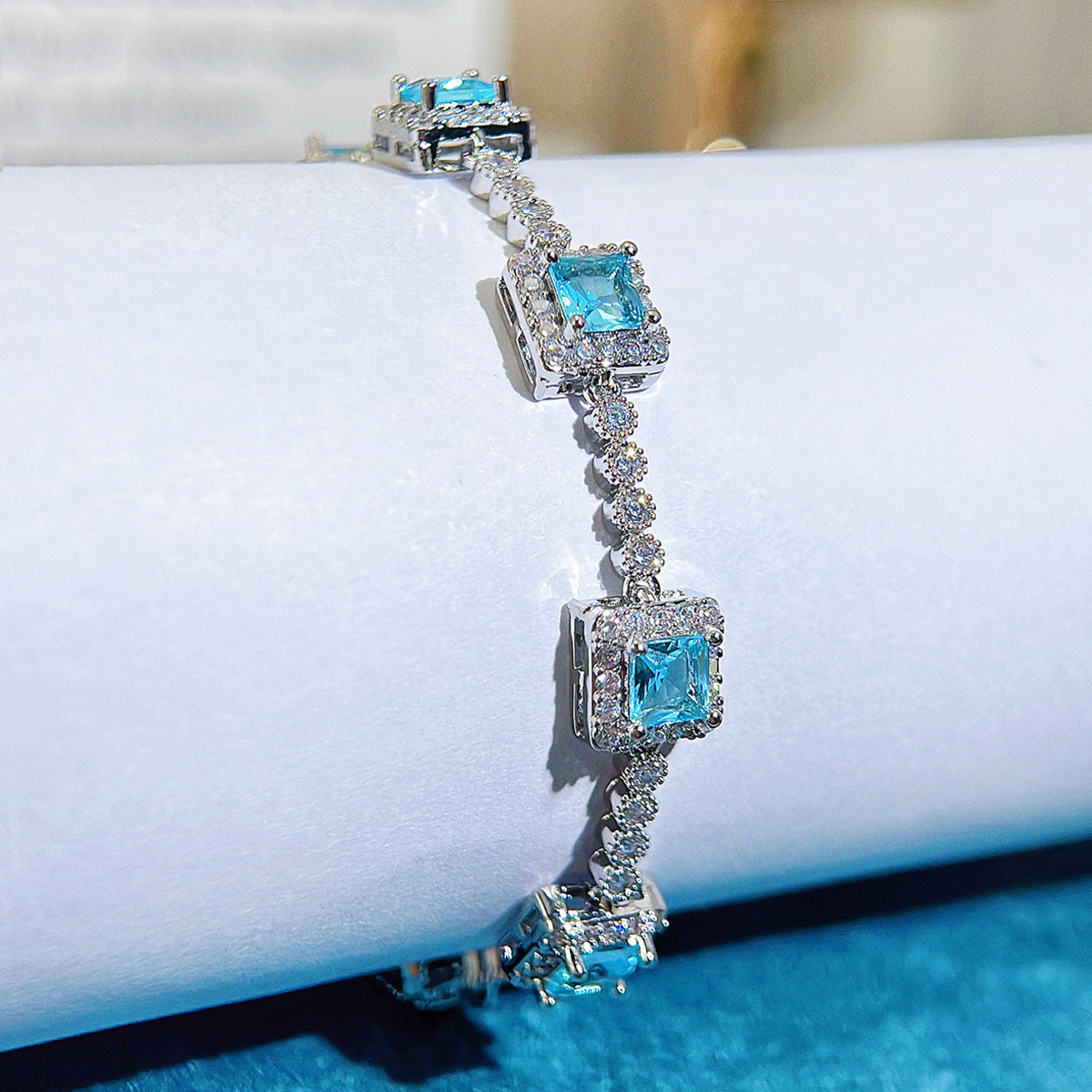 Add the Ocean Blue Cubic Zirconia Bracelet to your collection today and let its niche charm and French retro styling become a cherished part of your jewelry repertoire.