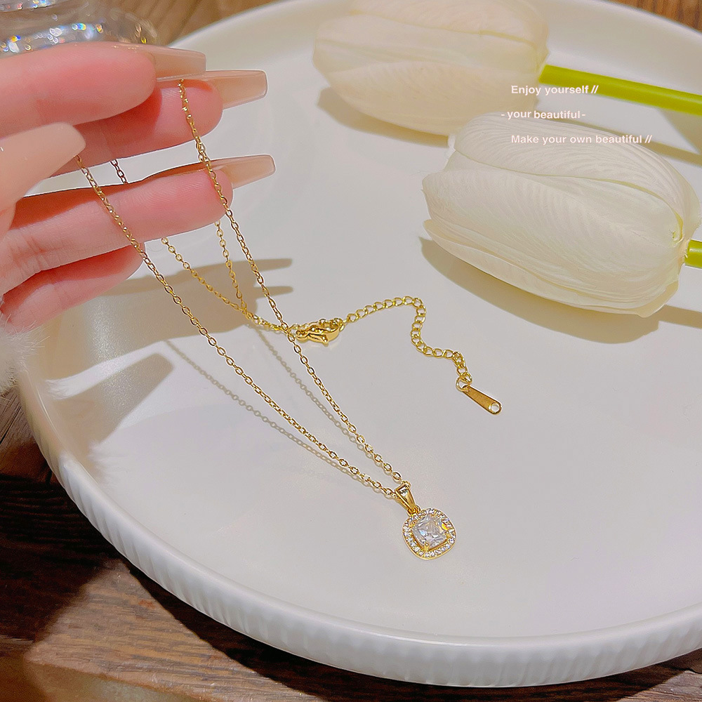 Micro-set elegant luxury full diamond pendant, genuine gold plated exquisite fashion necklace, clavicle chain cube necklace