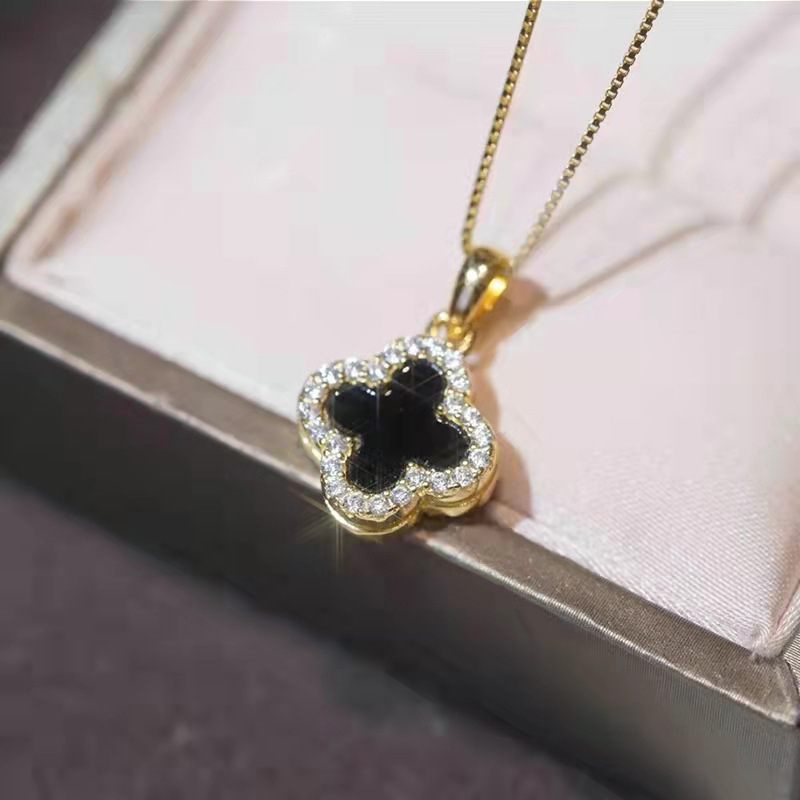 Reversible four-leaf clover necklace, fashionable and versatile classic pendant, zircon necklace.